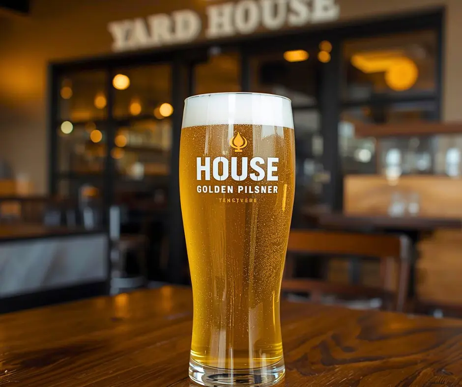 | House Golden Pilsner – $7.79 / $9.79 / $15.49 (190) | Crisp pilsner brewed just for Yard House with light golden hue and smooth end. Made using traditional lager methods for clean taste. Very popular as an entry-level craft beer. Best for pairing with burgers, pizzas, or any casual meal. (46 words) |