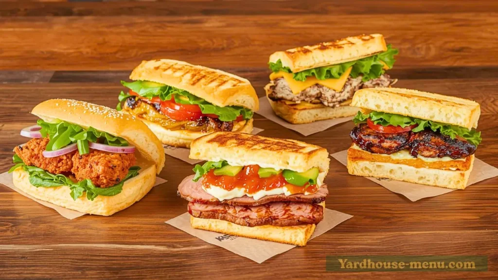Grab Yard House sandwiches for quick, flavorful takeout. Spicy Nashville Hot Chicken, fresh Grilled Chicken & Avocado, bold Korean BBQ Cheesesteak, classic House Cheesesteak, or comforting Grilled Cheese with bisque.