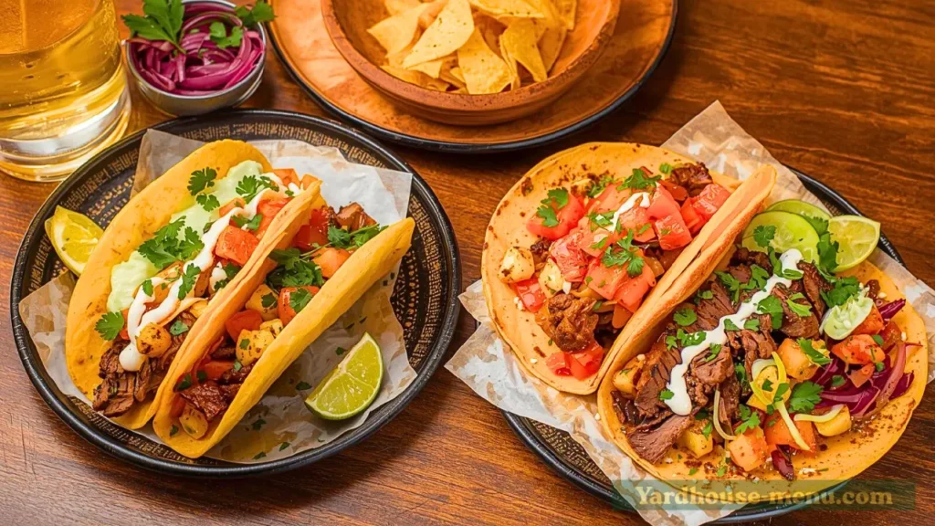 Spice up takeout with Yard House street tacos. Vampire brings cheesy carnitas with bacon and avocado. Carne Asada offers juicy grilled beef with rice and beans. Bold flavors in every bite. Shareable, fresh, and perfect for taco night at home.